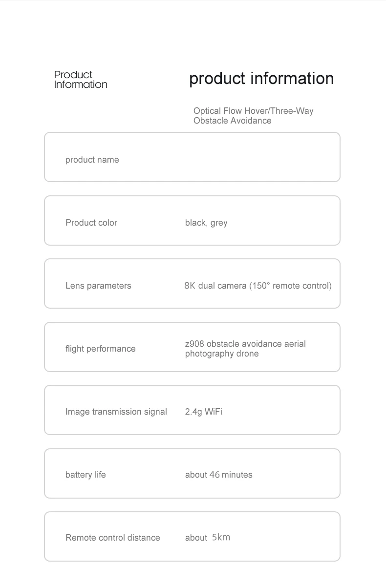 Equipado com duas câmeras, incluindo uma câmera ajustável, este drone eleva suas possibilidades de captura para outro nível. Capture vistas panorâmicas impressionantes ou focos detalhados em ângulos que você nunca imaginou. A câmera ajustável permite que você explore seu criatividade e crie imagens e vídeos verdadeiramente únicos. Mas isso não é tudo. Com o detector de obstáculos integrado, você pode voar com confiança, sabendo que seu drone evitará automaticamente obstáculos em seu caminho. Isso garante um voo seguro e uma experiência livre de preocupações, permitindo que você se concentre em capturar momentos incríveis. A bateria de 18 minutos de autonomia oferece uma experiência de voo prolongada, permitindo que você explore sua área com tranquilidade e capture imagens impressionantes sem se preocupar com a vida útil da bateria. Seja você um entusiasta da fotografia aérea ou um aventureiro em busca de novas perspectivas, nosso Drone com 2 Câmeras é a escolha perfeita. Combinando tecnologia avançada e recursos inovadores, este drone é a ferramenta definitiva para capturar e compartilhar suas aventuras. Eleve suas habilidades de fotografia e explore o mundo de uma maneira completamente nova. Adquira o nosso Drone com 2 Câmeras e mergulhe em uma experiência de voo única e emocionante, onde cada momento se transforma em uma memória duradoura. Ítens inclusos: 1 drone Z908 Max 1 controle remoto 1 bateria 4 hélices extras 1 cabo para carregamento USB-A para MICRO-USB 1 chave de fenda para a troca das hélices
